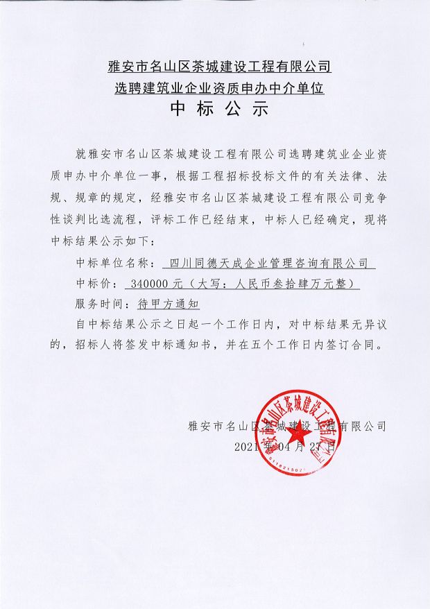 雅安市名山區茶城建設工程有限公司 關于公開招聘高校畢業生總成績排名及體檢、考察事宜的公告...